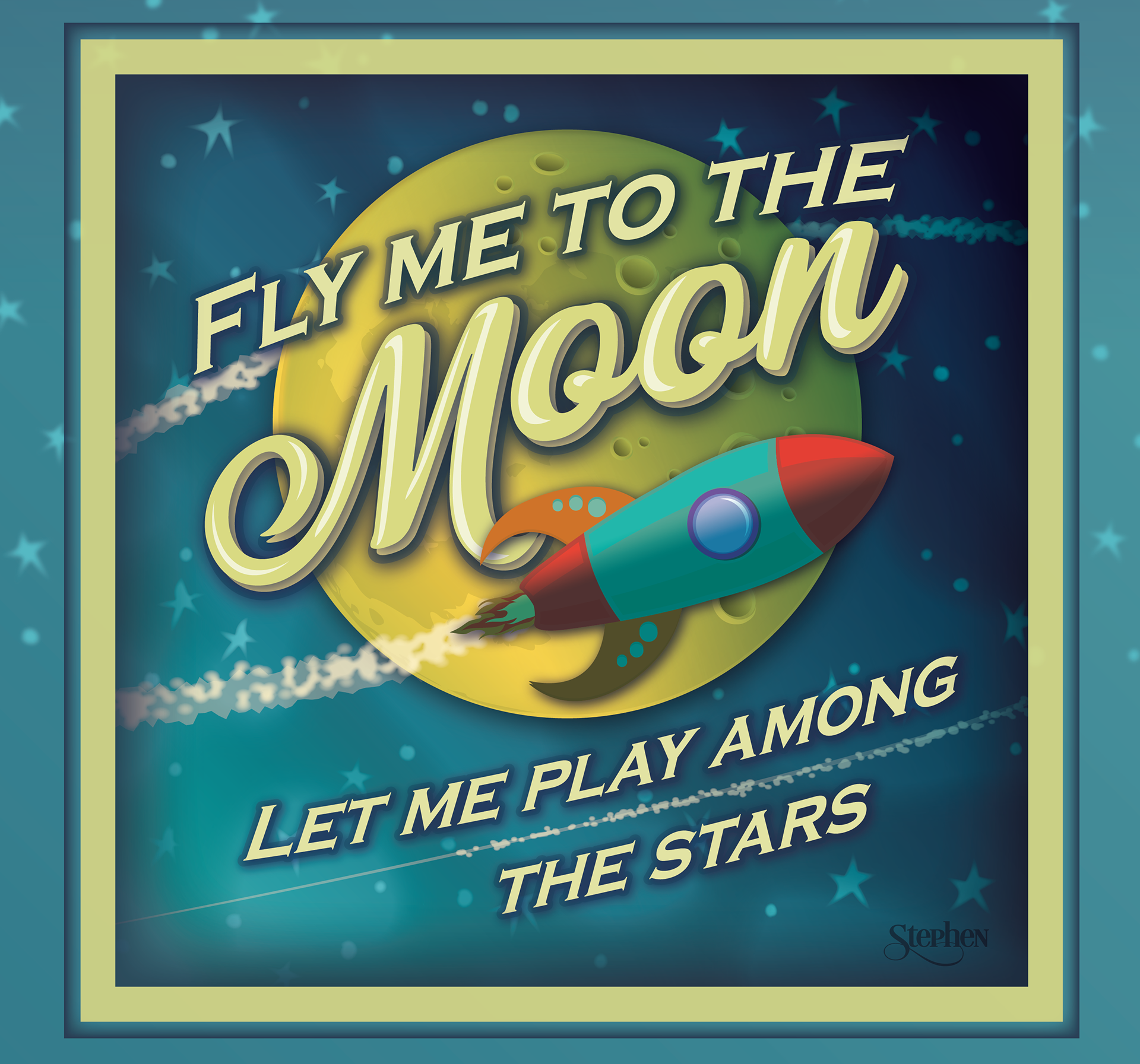 Digital illustration based on the 1954 song Fly Me to the Moon, originally entitled "In Other Words"